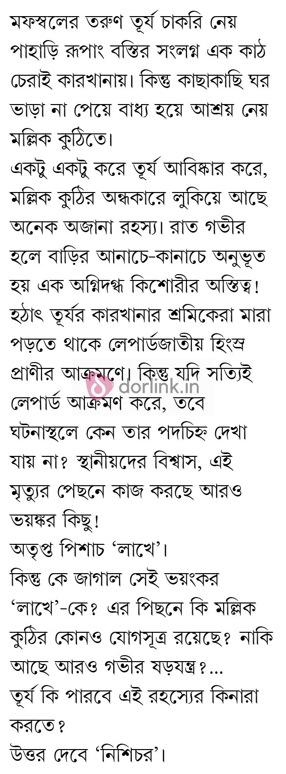 অতৃপ্ত পিশাচ ‘লাখে’। ............ কিন্তু কে জাগাল সেই ভয়ংকর 'লাখে'-কে? এর পিছনে কি মল্লিক কুঠির কোনও যোগসূত্র রয়েছে? নাকি আছে আরও গভীর ষড়যন্ত্র?... তূর্য কি পারবে এই রহস্যের কিনারা করতে?