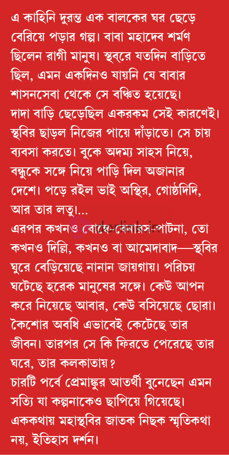 দাদা বাড়ি ছেড়েছিল একরকম সেই কারণেই। স্থবির ছাড়ল নিজের পায়ে দাঁড়াতে। সে চায় ব্যবসা করতে। বুকে অদম্য সাহস নিয়ে, বন্ধুকে সঙ্গে নিয়ে পাড়ি দিল অজানার দেশে। পড়ে রইল ভাই অস্থির, গোষ্ঠদিদি, আর তার লতু।... এরপর কখনও বোম্বে-বেনারস-পাটনা, তো কখনও দিল্লি, কখনও বা আমেদাবাদ―স্থবির ঘুরে বেড়িয়েছে নানান জায়গায়। পরিচয় ঘটেছে হরেক মানুষের সঙ্গে। কেউ আপন করে নিয়েছে আবার, কেউ বসিয়েছে ছোরা। কৈশোর অবধি এভাবেই কেটেছে তার জীবন। তারপর সে কি ফিরতে পেরেছে তার ঘরে, তার কলকাতায়?