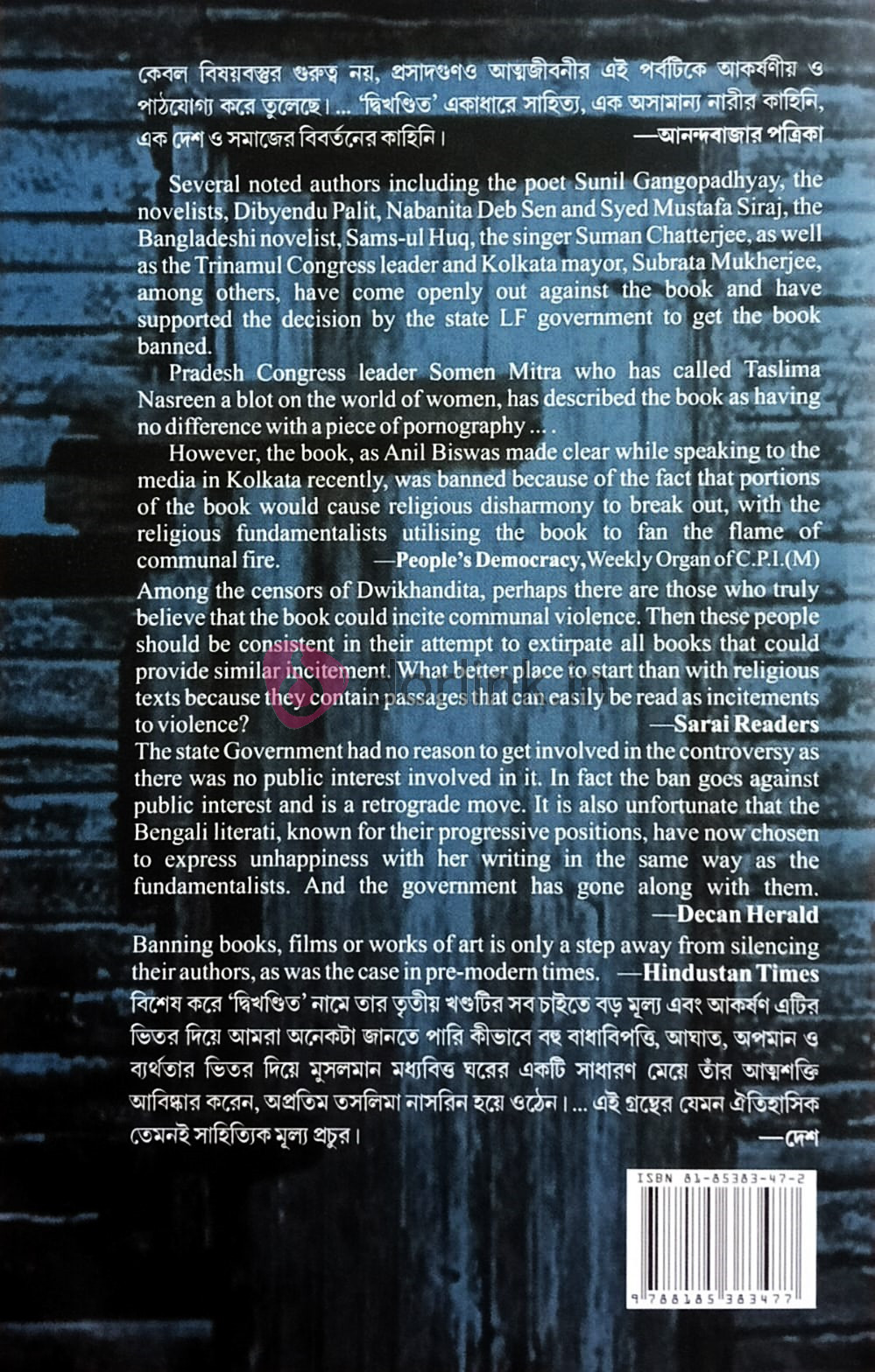 • ‘দ্বিখণ্ডিত’ প্রকাশের পর এটি বাংলাদেশে নিষিদ্ধ করা হয়।