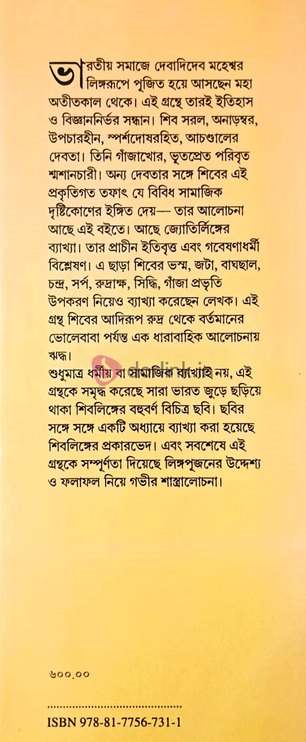শুধুমাত্র ধর্মীয় বা সামাজিক ব্যাখ্যার বাইরে, সারা ভারত জুড়ে ছড়িয়ে থাকা শিবলিঙ্গের বহুবর্ণ ও বিচিত্র ছবিগুলোর সংযোজন গ্রন্থটিকে বিশেষ করেছে। শিবলিঙ্গের প্রকারভেদের বিস্তারিত বিশ্লেষণ একটি অধ্যায়ে উপস্থাপিত হয়েছে। পাশাপাশি লিঙ্গপূজনের উদ্দেশ্য ও ফলাফল নিয়ে গভীর শাস্ত্রালোচনা দ্বারা গ্রন্থটি সম্পূর্ণতা লাভ করেছে।