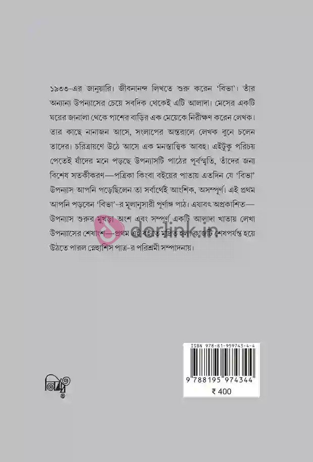এই প্রথম আপনি পড়বেন 'বিভা'-র মূলানুসারী পূর্ণাঙ্গ পাঠ। এযাবৎ অপ্রকাশিত-উপন্যাস শুরুর মুখড়া অংশ এবং সম্পূর্ণ একটি আলাদা খাতায় লেখা উপন্যাসের শেষাংশ- প্রথম এই বইতে মুদ্রিত হল। কাজটি শেষপর্যন্ত হয়ে উঠতে পারল স্নেহাশিস পাত্র-র পরিশ্রমী সম্পাদনায়।