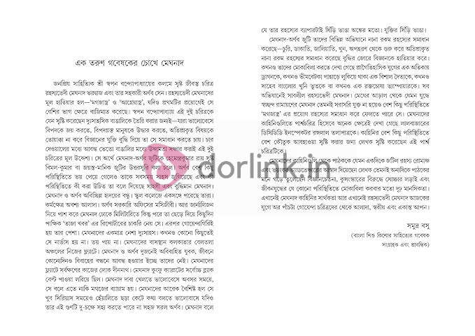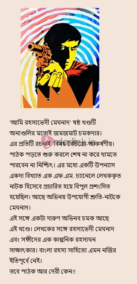 ... এছাড়াও আছে মেঘনাদের প্রথম গোয়েন্দাগিরির এক কৌতূহলদীপক কাহিনী, যা এ পর্যন্ত ছিল অপ্রকাশিত। এই সংকলনে মেঘনাদ ভরদ্বাজের এরকমই জমজমাট রোমাঞ্চকর, গা ছমছমে ১১টি রহস্যভেদের কাহিনি উপহার দিয়েছেন লেখক। যা পড়তে শুরু করলে শেষ না করে রেহাই নেই।