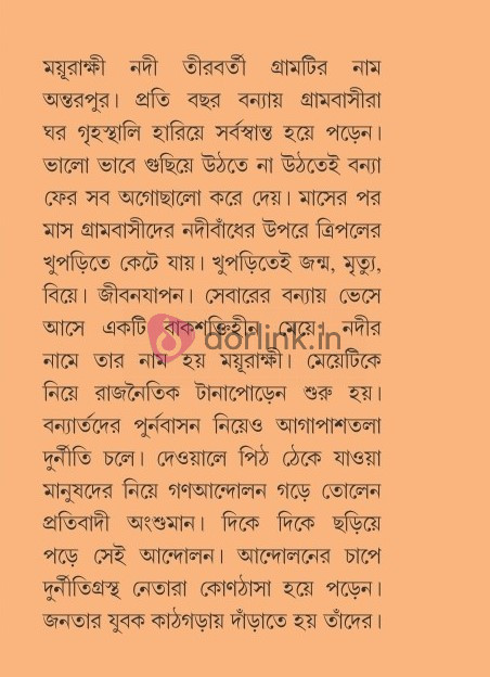 ময়ূরাক্ষী নদী তীরবর্তী গ্রামটির নাম অন্তরপুর। প্রতি বছর বন্যায় গ্রামবাসীরা ঘর গৃহস্থালি হারিয়ে সর্বস্বান্ত হয়ে পড়েন। ভালো ভাবে গুছিয়ে উঠতে না উঠতেই বন্যা ফের সব অগোছালো করে দেয়। মাসের পর মাস গ্রামবাসীদের নদীবাঁধের উপরে ত্রিপলের খুপড়িতে কেটে যায়। খুপড়িতেই জন্ম, মৃত্যু, বিয়ে। জীবনযাপন। সেবারের বন্যায় ভেসে আসে একটি বাকশক্তিহীন মেয়ে। নদীর নামে তার নাম হয় ময়ূরাক্ষী। মেয়েটিকে নিয়ে রাজনৈতিক টানাপোড়েন শুরু হয়। বন্যার্তদের পুর্নবাসন নিয়েও আগাপাশতলা দুর্নীতি চলে। দেওয়ালে পিঠ ঠেকে যাওয়া মানুষদের নিয়ে গণআন্দোলন গড়ে তোলেন প্রতিবাদী অংশুমান। দিকে দিকে ছড়িয়ে পড়ে সেই আন্দোলন। আন্দোলনের চাপে দুর্নীতিগ্রস্থ নেতারা কোণঠাসা হয়ে পড়েন। জনতার যুবক কাঠগড়ায় দাঁড়াতে হয় তাঁদের।