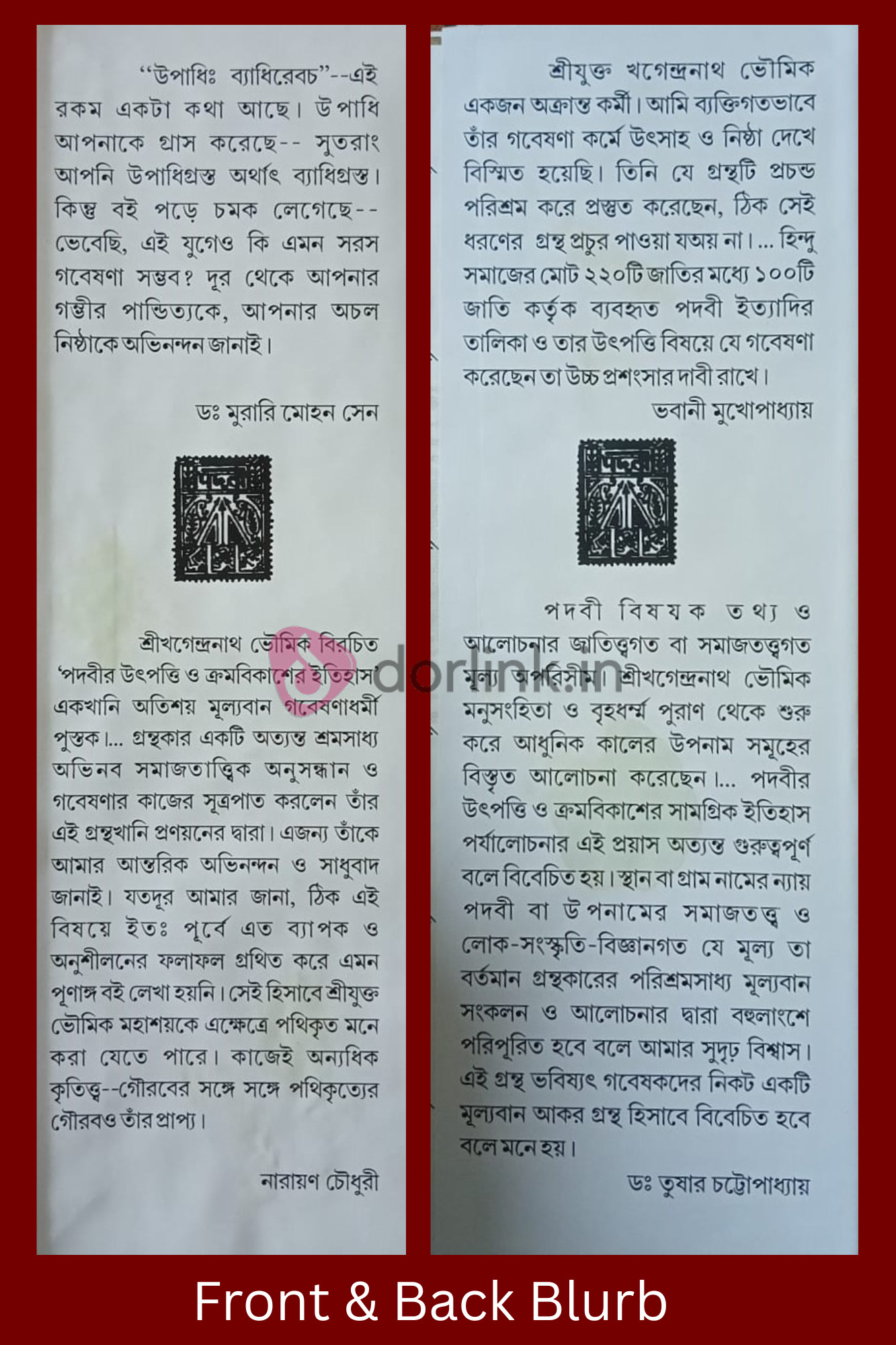 শ্রীখগেন্দ্রনাথ ভৌমিকের লেখা “পদবীর উৎপত্তি ও ক্রমবিকাশের ইতিহাস (পরিমার্জিত ও বর্ধিত তৃতীয় সংস্করণ)” বাঙালি হিন্দু সমাজে বংশগত নাম বা উপনামের উৎপত্তি, বিবর্তন ও সমাজতাত্ত্বিক তাৎপর্য নিয়ে রচিত এক অনন্য গ্রন্থ, যা বাংলা সাহিত্যে এক বিরল সংযোজন। শুধু নৃ-বিজ্ঞানী বা সমাজ বিজ্ঞানীদের জন্যই নয়, সাধারণ পাঠকের কৌতূহলও নিবৃত্ত করে এমন সমৃদ্ধ তথ্যভাণ্ডার এতে সংকলিত হয়েছে।