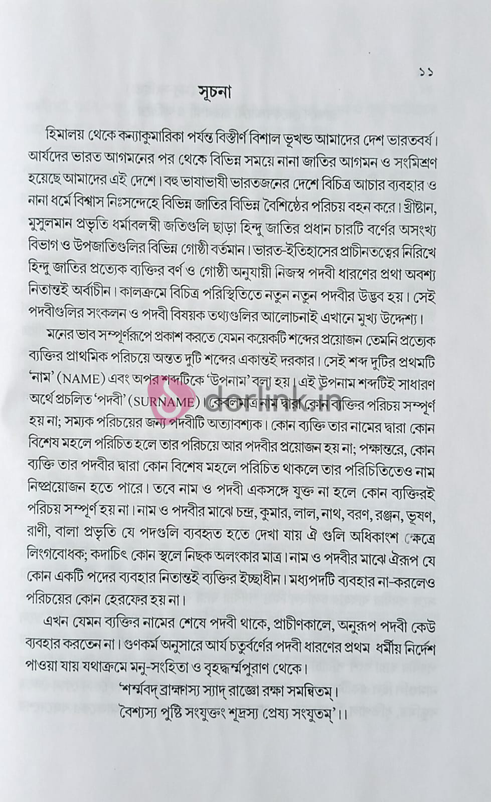 পদবীর সূচনা কবে থেকে, কেন একটি বংশ নির্দিষ্ট উপাধি ধারণ করে, উপনাম দিয়ে জাতি নির্ধারণ কতটা যুক্তিসঙ্গত, কিংবা উপনাম পরিবর্তনের সমাজতাত্ত্বিক মাত্রা—এসব গুরুত্বপূর্ণ প্রশ্নের সুপ্রমাণিত উত্তর লেখক সুবিন্যস্তভাবে উপস্থাপন করেছেন।