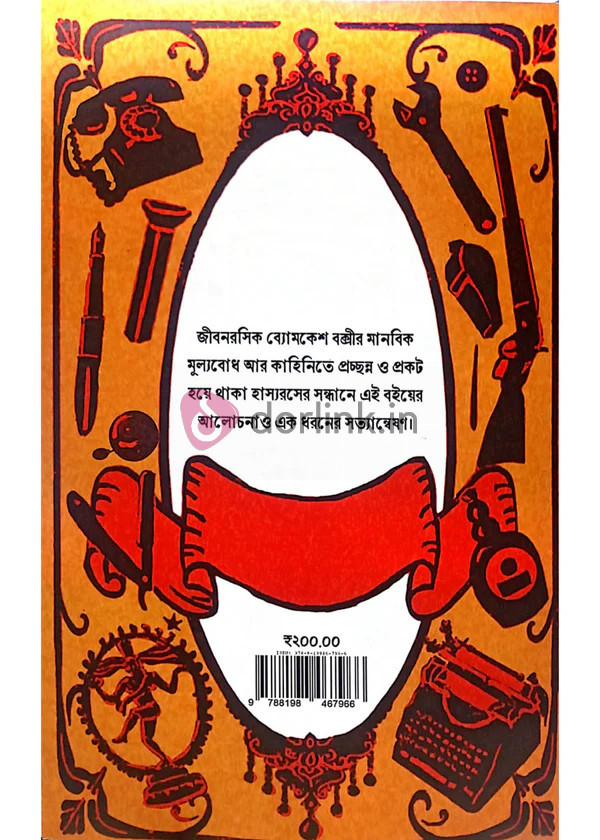 শরদিন্দু বন্দ্যোপাধ্যায়ের গদ্য সাহিত্যের বৈশিষ্ট্যগুলির একটি হল কাহিনির প্রতি স্তরে আর ভাঁজে সুক্ষ্ম রসবোধের ছোঁয়া দিয়ে রাখা। ব্যোমকেশ বক্সীকে নিয়ে লেখা গল্প-উপন্যাসের সেই বিষয়টির খোঁজ করা হয়েছে এই বইতে। একই সঙ্গে ব্যোমকেশ এবং অজিতের চরিত্রেও শরদিন্দু আরোপ করেছেন আশ্চর্য মূল্যবোধ এবং জীবনরস সন্ধান আর আস্বাদনের মানসিকতা। এই বইতে আলোচিত হয়েছে সেই বিষয়টিও। জীবনরসিক ব্যোমকেশ বক্সীর মানবিক মূল্যবোধ আর কাহিনিতে প্রচ্ছন্ন ও প্রকট হয়ে থাকা হাস্যরসের সন্ধানে এই বইয়ের আলোচনাও এক ধরনের সত্যান্বেষণ।