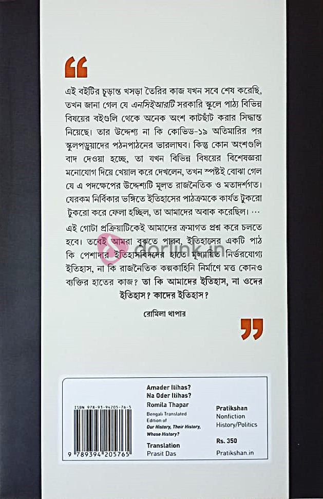 This book is the Bengali translation of "Our History, Their History, Whose History ?" (2023)