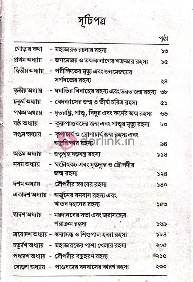 সেই আবেগকে উস্কে দিতেই এবার নবীন লেখক তারাশঙ্কর মুখোপাধ্যায়ের নতুন কলমে "মহাভারতের গোপন রহস্য"। কলমটি নতুন, লেখকও নবীন, তাবলে কিন্তু কাঁচা নন। লেখকের পাকা হাতের বলিষ্ঠ লেখনীতে সহজ-সরল প্রাঞ্জল ভাষায় এই প্রন্থে উন্মোচিত হয়েছে মহাভারতের গূঢ় রহস্যের আশ্চর্য সমাধান, তার নানান কাহিনী-উপকাহিনীর যথার্থ ব্যাখ্যা। মননশীল পাঠকের উদ্দেশ্যে নিবেদিত হল প্রন্থটির প্রথম খণ্ড।