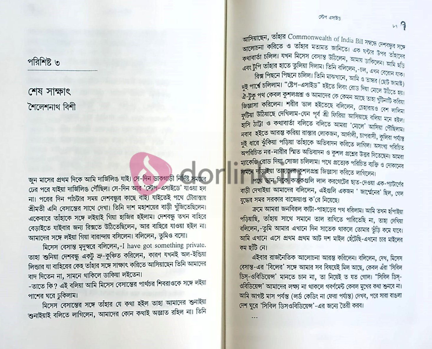 "২০২৫, চিত্তরঞ্জন দাশের মৃত্যুশতবর্ষ। ম্যালের পাশেই সি আর দাশ রোডে অবস্থিত স্টেপ এসাইড। এই রাস্তার আগে নাম ছিল রঙ্গীত রোড। পরে লেবঙ রোড বলেই ডাকা হত। নৃপেন্দ্র সরকারের এই বাড়িতেই দেশবন্ধু জীবনের শেষ সময়টা কাটিয়েছিলেন। এইখানেই মহাত্মা গান্ধী ছুটে এসেছেন বন্ধুর ডাকে। এর অন্দরে আবর্তিত এবং নিয়ন্ত্রিত হয়েছে ভারতের জাতীয় রাজনীতি এবং স্বাধীনতা সংগ্রামের গুরুত্বপূর্ণ অধ্যায়। অথচ তেমন করে এই দার্জিলিং বৃত্তান্ত লেখা হয়নি কোথাও। সেই তাগিদ থেকেই লেখা এই বই সে অভাব কিছুটা হলেও পূরণ করবে বলে আশা রাখি। আর একটা বিশ্বাস যে বাঙালি তার দার্জিলিংকে অন্যভাবে চিনতে পারবে।" ~~ লেখক