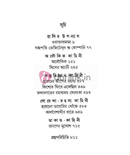 সবধরনের গল্পেই তিনি সার্থক। কিশোরদের জন্য লেখা তাঁর নানা স্বাদের উপন্যাসগুলি এবার এক মলাটে এনে প্রকাশিত হল দশটি কিশোর উপন্যাস। এখানে আছে, ওয়ান্ডার মামা, গজপতি ভেজিটেবল শু কোম্পানি, অলৌকিক, সিসের আংটি, হারানো জীপের রহস্য, কিশোর ফিরে এসেছিল, মন্দারগড়ের রহস্যময় জ্যোৎস্না, কালবৈশাখীর রাত্রে, হারানো ডায়েরির খোঁজে ও রাবণের মুখোশ।