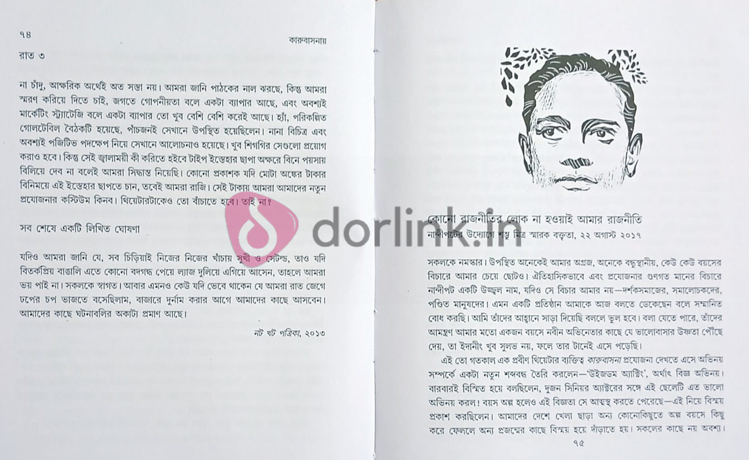 মঞ্চে বা পর্দায় অভিনেতার কার্যকলাপ দেখে যখন দর্শকরা চমৎকৃত, অভিভূত হচ্ছেন তখন অভিনেতা আসলে কোথায়? দর্শকের কথা কি তখন তাঁর মনে থাকে, নাকি তিনি তখন অন্যকিছুর সন্ধানে লিপ্ত থাকেন? অভিনেতার যাত্রা আসলে কোথা থেকে কোন গন্তব্যে? হাততালি, খ্যাতি বা ট্রোলিং পেরিয়ে কীভাবে এগোন তিনি? আদৌ কি এগোতে পারেন? এসব প্রশ্ন উস্কে দেয় এ বই। বারোটি প্রবন্ধ জানায় হাততালিময় মহাসমারোহের অভিনেতা জীবনের তাকে-ফাঁকে উইপোকাদের বালি, মাটি ও পলি দিয়ে নির্মাণকার্য শুরু করার কথা।