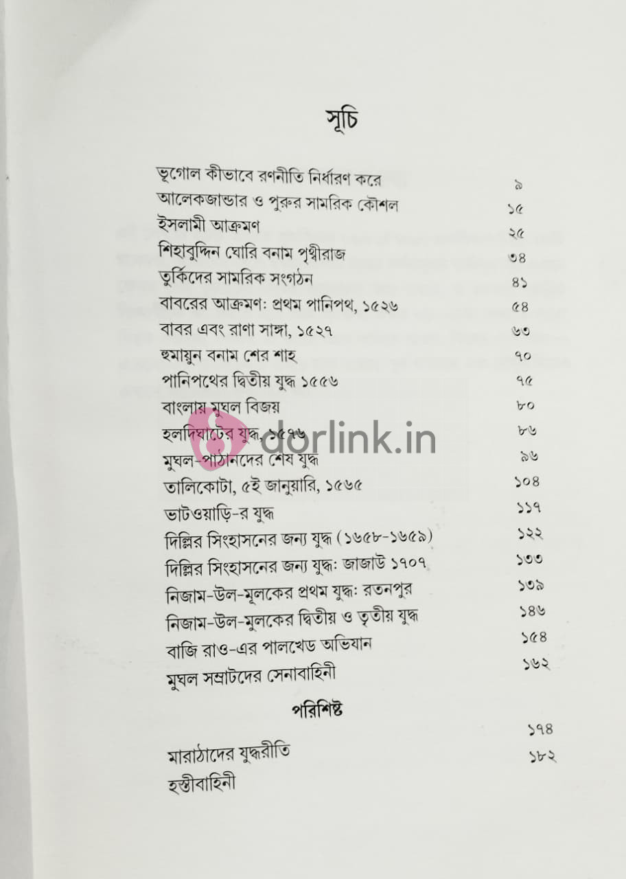 এই গ্রন্থটি প্রাচীনকাল থেকে ঔপনিবেশিক যুগ পর্যন্ত ভারত উপমহাদেশের যুদ্ধপ্রকৌশল, কৌশল, প্রযুক্তি ও সামরিক সংস্কৃতির এক অনন্য ও সমন্বিত বিশ্লেষণ উপস্থাপন করে। যুদ্ধ এখানে একদিকে বিজ্ঞান, অন্যদিকে শিল্পের প্রকাশ। খ্রিস্টপূর্ব ৩২৬ অব্দে আলেকজান্ডার ও পুরুর সংঘর্ষ থেকে শুরু করে ১৮শ শতাব্দীর দাক্ষিণাত্যের রক্তক্ষয়ী যুদ্ধসমূহ পর্যন্ত, ভারতবর্ষের মাটিতে যুদ্ধবিদ্যা (Art of War) & রণনীতির যে দীর্ঘ বিবর্তন ঘটেছে, তা এই গ্রন্থে নতুন আলোয় প্রতিফলিত হয়েছে। উত্তর ভারতের সমভূমি ও দাক্ষিণাত্যের ভৌগোলিক বাস্তবতা কীভাবে রণকৌশল নির্ধারণ করেছে, সেনাবাহিনীর সংগঠন ও চরিত্র কীভাবে বিজয় ও পরাজয় উভয়কেই প্রভাবিত করেছে।