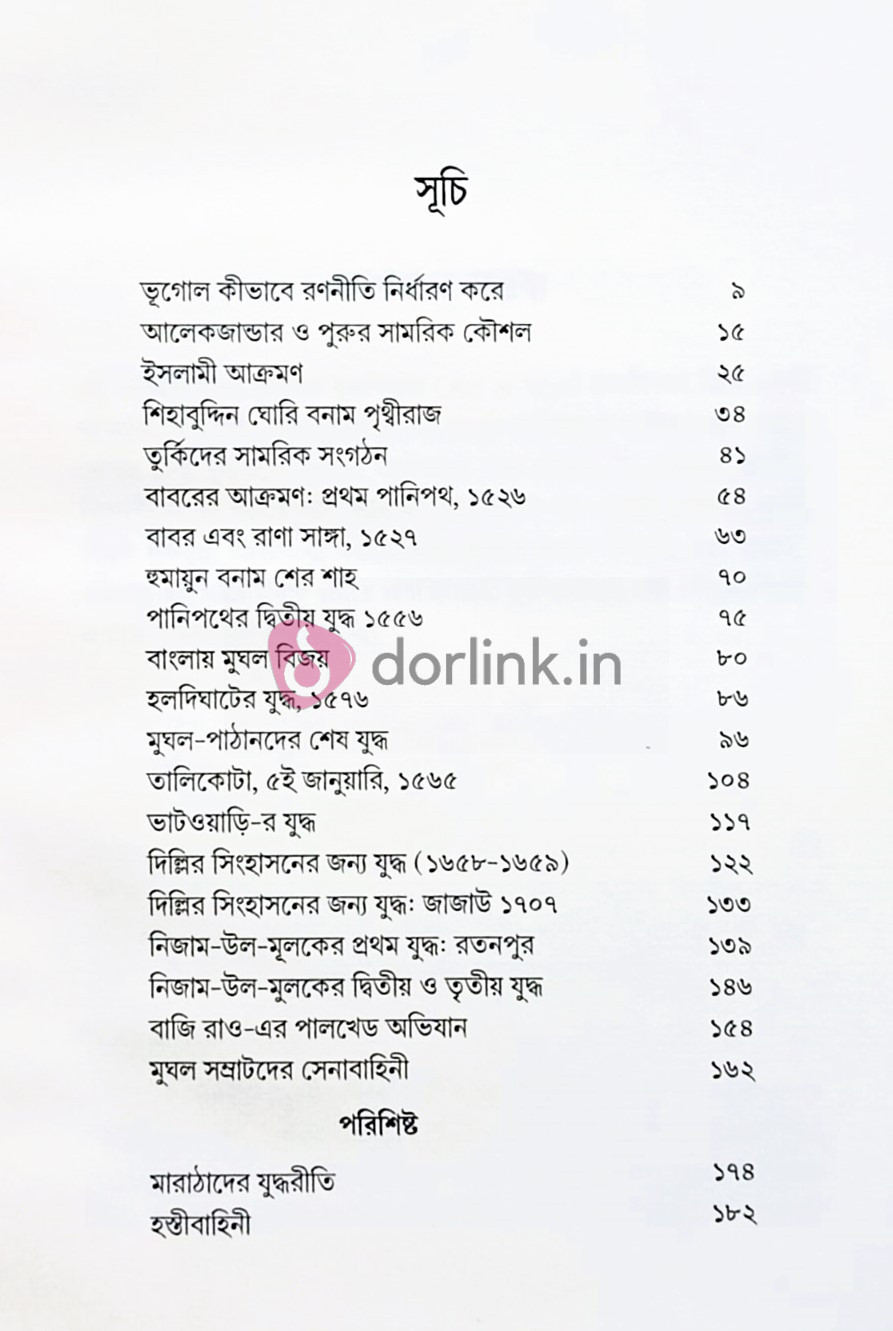 এই গ্রন্থটি প্রাচীনকাল থেকে ঔপনিবেশিক যুগ পর্যন্ত ভারত উপমহাদেশের যুদ্ধপ্রকৌশল, কৌশল, প্রযুক্তি ও সামরিক সংস্কৃতির এক অনন্য ও সমন্বিত বিশ্লেষণ উপস্থাপন করে। যুদ্ধ এখানে একদিকে বিজ্ঞান, অন্যদিকে শিল্পের প্রকাশ। খ্রিস্টপূর্ব ৩২৬ অব্দে আলেকজান্ডার ও পুরুর সংঘর্ষ থেকে শুরু করে ১৮শ শতাব্দীর দাক্ষিণাত্যের রক্তক্ষয়ী যুদ্ধসমূহ পর্যন্ত, ভারতবর্ষের মাটিতে যুদ্ধবিদ্যা (Art of War) & রণনীতির যে দীর্ঘ বিবর্তন ঘটেছে, তা এই গ্রন্থে নতুন আলোয় প্রতিফলিত হয়েছে। উত্তর ভারতের সমভূমি ও দাক্ষিণাত্যের ভৌগোলিক বাস্তবতা কীভাবে রণকৌশল নির্ধারণ করেছে, সেনাবাহিনীর সংগঠন ও চরিত্র কীভাবে বিজয় ও পরাজয় উভয়কেই প্রভাবিত করেছে।