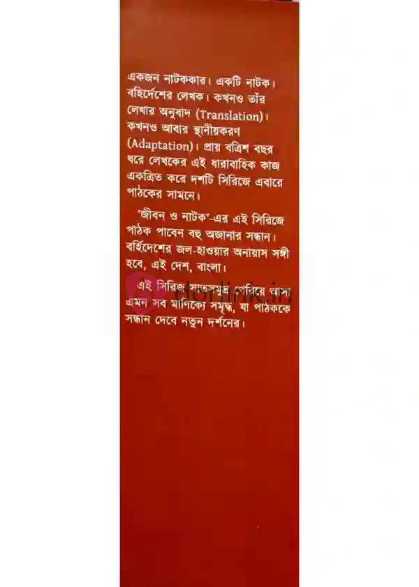 একজন নাটককার। একটি নাটক। বহির্দেশের লেখক। কখনও তাঁর লেখার অনুবাদ (Translation)। কখনও আবার স্থানীয়করণ (Adaptation)। প্রায় বত্রিশ বছর ধরে লেখকের এই ধারাবাহিক কাজ একত্রিত করে দশটি সিরিজে এবারে পাঠকের সামনে।