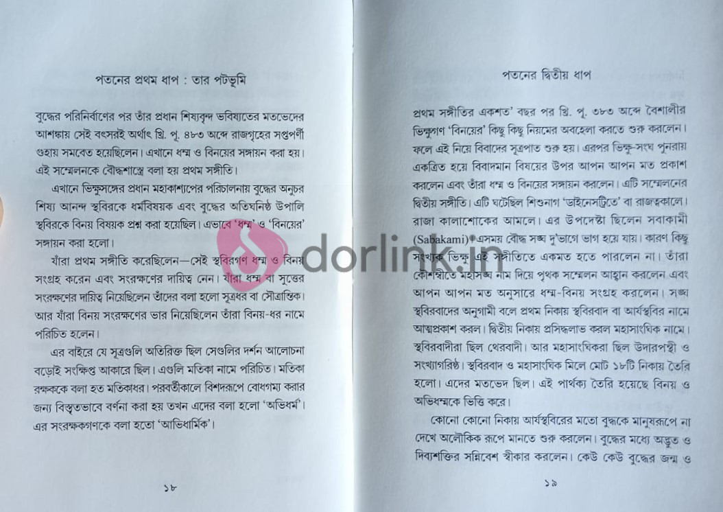 বৌদ্ধ ধর্মের জন্ম হয় ভারতে, খ্রিস্টপূর্ব ষষ্ঠ শতকে। পঁয়তাল্লিশ বছর ধরে বুদ্ধদেব এই ধর্ম সমগ্র ভারতব্যাপী প্রচার করেছিলেন। বুদ্ধের মহাপরিনির্বাণের সোয়া দুইশত বছর পর সম্রাট অশোক এই ধর্মকে বিশ্ব জুড়ে প্রচার করেন। বৌদ্ধ ধর্মের বার্তা পৌঁছয় গ্রিস, মিশর, সিরিয়া, মধ্য এশিয়া, চীন, দক্ষিণে শ্রীলঙ্কা এবং বার্মা ও শ্যামদেশ পর্যন্ত। এ পর্বকে বলা হয় ধর্মের স্বর্ণযুগ। এ সময় মহৎ চিন্তাবিদদের আত্মপ্রকাশ ঘটে। পৃথিবীর ভিন্ন ভিন্ন প্রান্ত থেকে আধ্যাত্মিক জ্ঞান দীপ্তির জন্য বুদ্ধিজীবীরা এ দেশে পাঠ নিতে আসেন। হাজার হাজার বছর ধরে ভাস্কর্য শিল্প ও চিত্রকলায় গুহা মঠ মন্দির ভরে ওঠে। সেই ধর্ম সাতশত বছর আগে মাতৃভূমি থেকে বিলুপ্ত হয়ে গেল। রাহুল সাংকৃত্যায়ন সেই পতনের কারণগুলি অন্বেষণ করেছেন এই গ্রন্থকণিকায়। দেখিয়েছেন শুধুই ইসলাম আক্রমণ নয়, বৌদ্ধ ধর্মের পতনের বীজ নিহিত ছিল তার শিকড়ে, ধর্মীয় ব্যাভিচারে, নৈতিক স্খলনে।