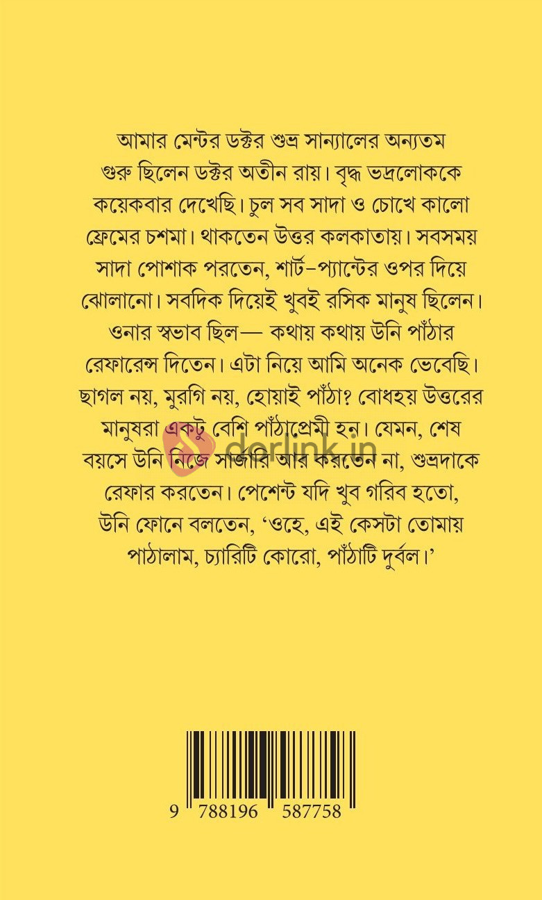 আমার মেন্টর ডক্টর শুভ্র সান্যালের অন্যতম গুরু ছিলেন ডক্টর অতীন রায়। বৃদ্ধ ভদ্রলোককে কয়েকবার দেখেছি। চুল সব সাদা ও চোখে কালো ফ্রেমের চশমা। থাকতেন উত্তর কলকাতায়। সবসময় সাদা পোশাক পরতেন, শার্ট-প্যান্টের ওপর দিয়ে ঝোলানো। সবদিক দিয়েই খুবই রসিক মানুষ ছিলেন। ওনার স্বভাব ছিল- কথায় কথায় উনি পাঁঠার রেফারেন্স দিতেন। এটা নিয়ে আমি অনেক ভেবেছি। ছাগল নয়, মুরগি নয়, হোয়াই পাঁঠা? বোধহয় উত্তরের মানুষরা একটু বেশি পাঁঠাপ্রেমী হন। যেমন, শেষ বয়সে উনি নিজে সার্জারি আর করতেন না, শুভ্রদাকে রেফার করতেন। পেশেন্ট যদি খুব গরিব হতো, উনি ফোনে বলতেন, 'ওহে, এই কেসটা তোমায় পাঠালাম, চ্যারিটি কোরো, পাঁঠাটি দুর্বল।'