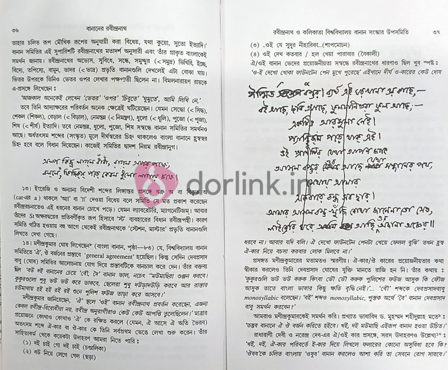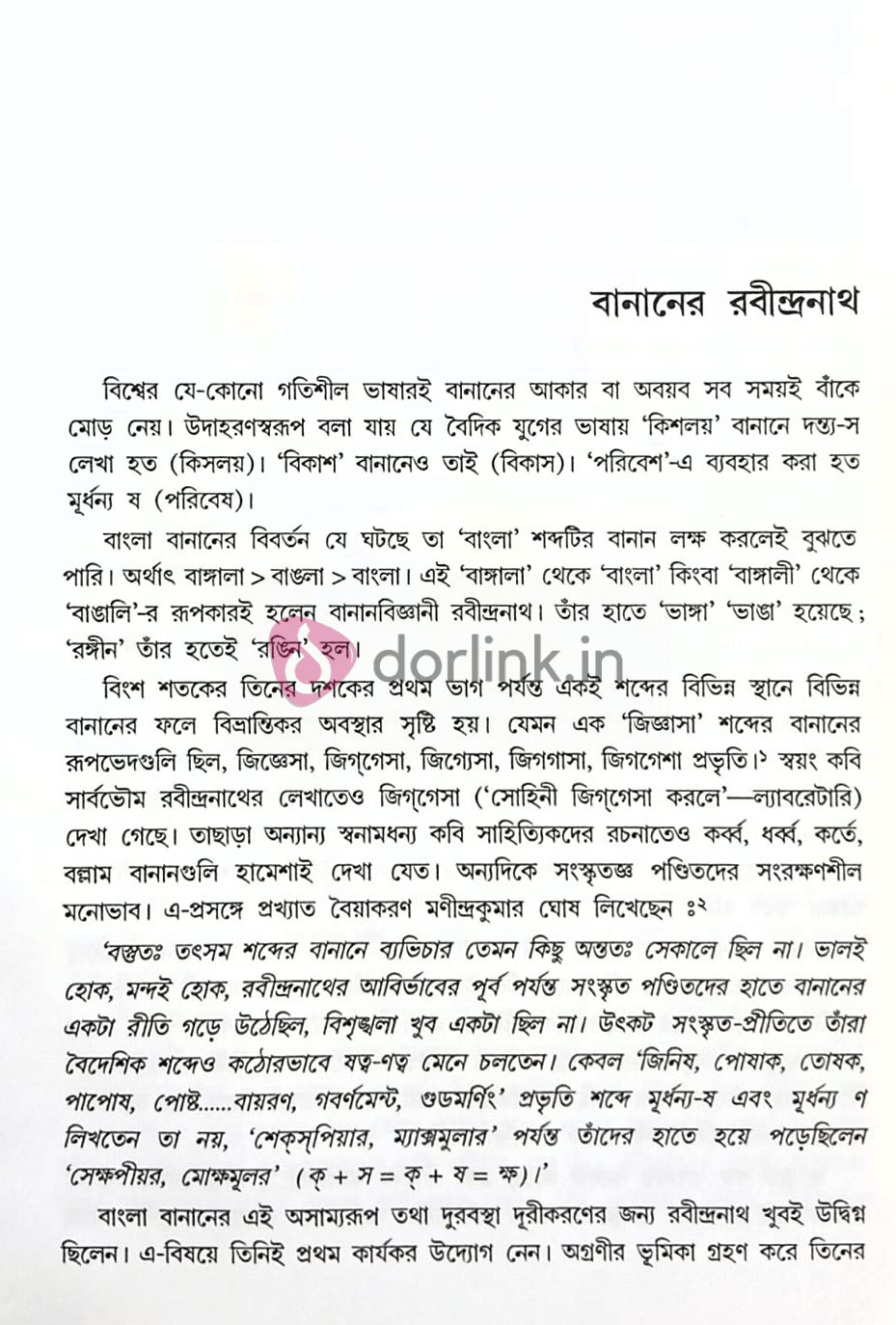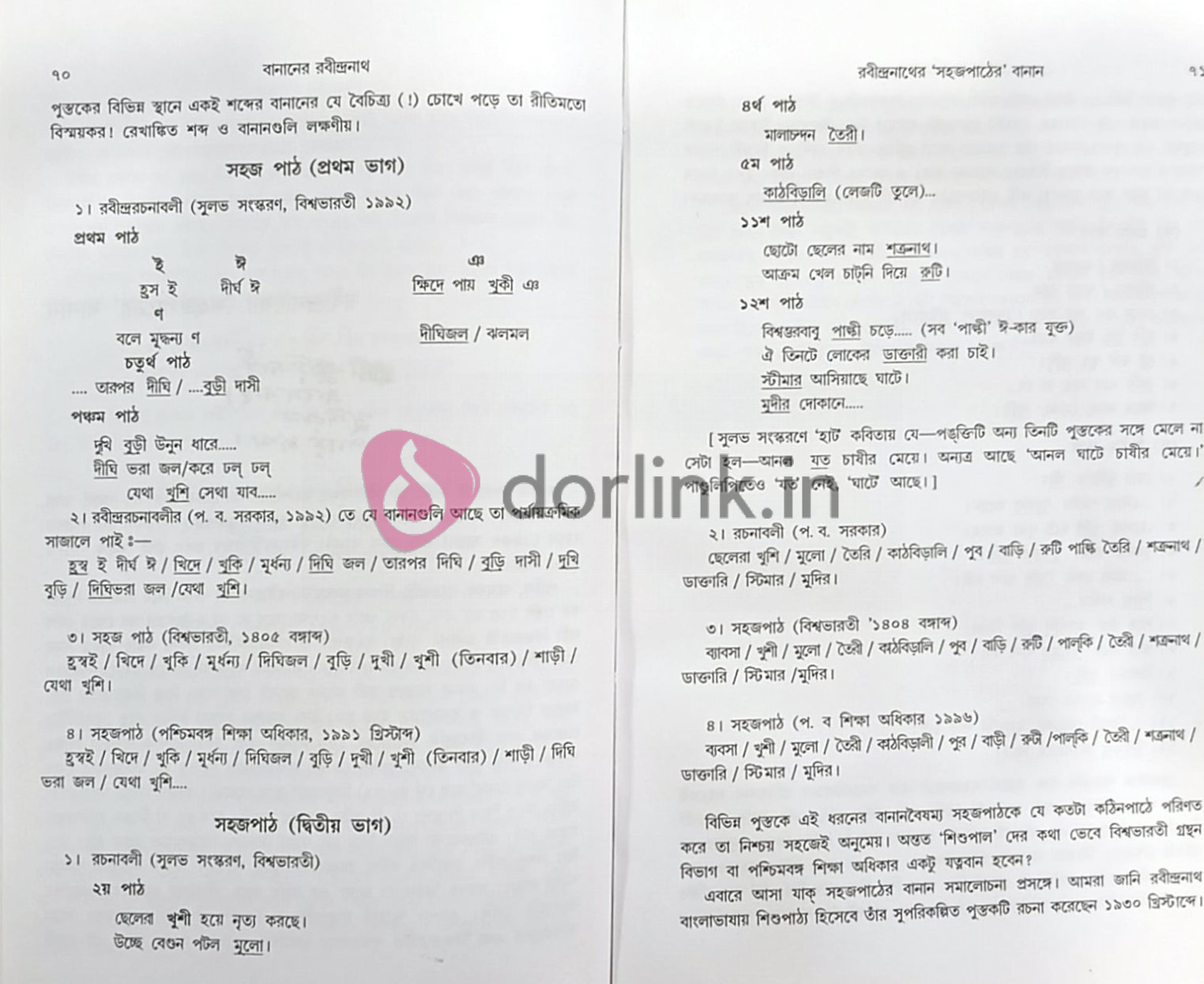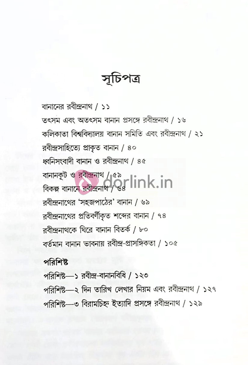 "বাংলা ভাষার প্রতিটি স্তম্ভের গায়ে যিনি এঁকে দিয়েছেন অফুরান আলোবাতাস, সেই রবীন্দ্রনাথের বানান-চিন্তার হালহদিশ খুঁজতে-খুঁজতে একদিন লেখা হয়ে গেল এ-বই। রবীন্দ্রনাথ 'ভাষাতত্ত্বের আলোচকগণের পথিকৃৎ', সুনীতিকুমারের সুরে এটুকু বললেও, না-বলা থেকে যায় অনেকখানি। দিগন্ত-উন্মোচক প্রবন্ধে শুধু নয়-প্রয়োগেও তিনি অনেক এগিয়ে। বিস্ময়ে বিমূঢ় হই, যখন দেখি, একশো বছর আগেই তিনি ব্যবহারে এনেছেন তৈরি, দাবি, বেশি, খুশি, দুখি অথবা রেডিয়ো, স্টুডিয়ো কিংবা নেমন্তন্ন, সন্ধে, বিদ্যে-র মতো শব্দ। আমাদের আধুনিকতার দাবি অনেকটাই নতজানু থাকে সেই অনন্য মেধাবী-চর্চার সামনে।