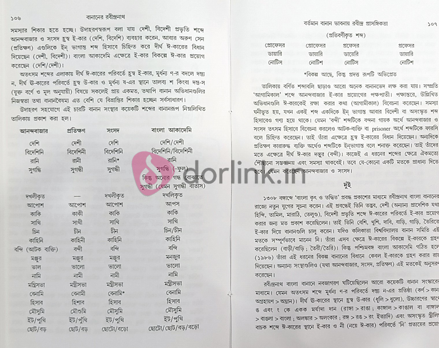 তুলনামূলক আলোচনায় কলকাতা বিশ্ববিদ্যালয় বানান সমিতি, আনন্দবাজার, সংসদ, প. ব. বাংলা আকাদেমি প্রভৃতি সংস্থার বানানের নির্দেশের উপর যুক্তিপূর্ণ মৌল-প্রশ্নের অবতারণা করেছেন। গ্রন্থে ব্যবহৃত রবীন্দ্র-পান্ডুলিপি চিত্র, প্রত্ন সম্পদের মতোই যা আকর্ষণীয়। রবীন্দ্রচর্চায় ও বাংলা বানানের আলোচনায় এই গ্রন্থ এক উজ্জ্বল দিক্ নির্দেশ।