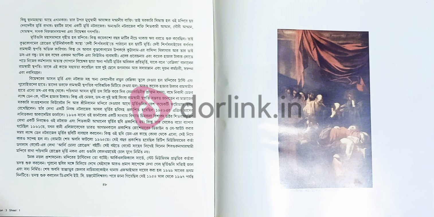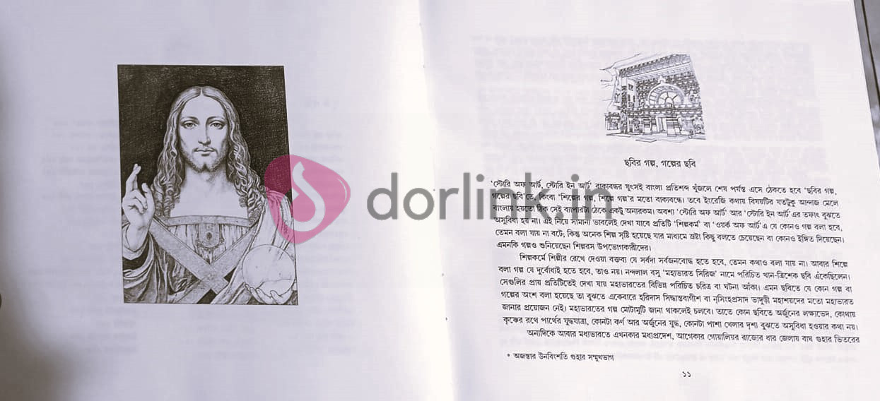 যে কোনও শিল্পকীর্তির সঙ্গে কিছু ঘটনা জড়িয়ে থাকে। সেইসব ঘটনা যেমন সৃষ্টির কারণ বা উৎসের সঙ্গে সম্পর্কিত তেমনই সেগুলির সম্পর্ক দেখা যায় শিল্পবস্তুটি নির্মাণের পর সেটির অবস্থা, মালিকানা, হাতবদলের পদ্ধতি ইত্যাদি বিষয়ের সঙ্গে। তাছাড়া শিল্পকৃতি সৃষ্টির সময়ে শিল্পীর মানসিক অবস্থা, ইচ্ছা, অভীপ্সা ইত্যাদি কখনও চমকপ্রদ কাহিনির সন্ধান দেয়। এইসব নিয়েই গড়ে ওঠে 'স্টোরি অফ আর্ট' এবং 'স্টোরি ইন আর্ট'। এগুলির সবটুকুই শিল্পের ইতিহাসের গুরুত্বপূর্ণ এবং অবিচ্ছেদ্য অঙ্গ। প্রাচীন থেকে প্রাগাধুনিক-ভারতবর্ষ ও পাশ্চাত্যের শিল্প-ইতিহাসের পাতায় ছড়িয়ে থাকা তেমন পঞ্চাশটি নিদর্শন বেছে নিয়ে সাজানো হয়েছে এই সংকলন। এখানকার প্রতিটি ঘটনা কোথাও রোমাঞ্চকর, কোথাও বা বিষাদময়; আবার কোনওটি নেহাতই মজার। শিল্পকলার এই বিচিত্র যাত্রাপথ পাঠকের সামনে আবারও প্রমাণ করবে যে, বাস্তব অনেক সময় কল্পনার চেয়েও বেশি বিস্ময়কর।