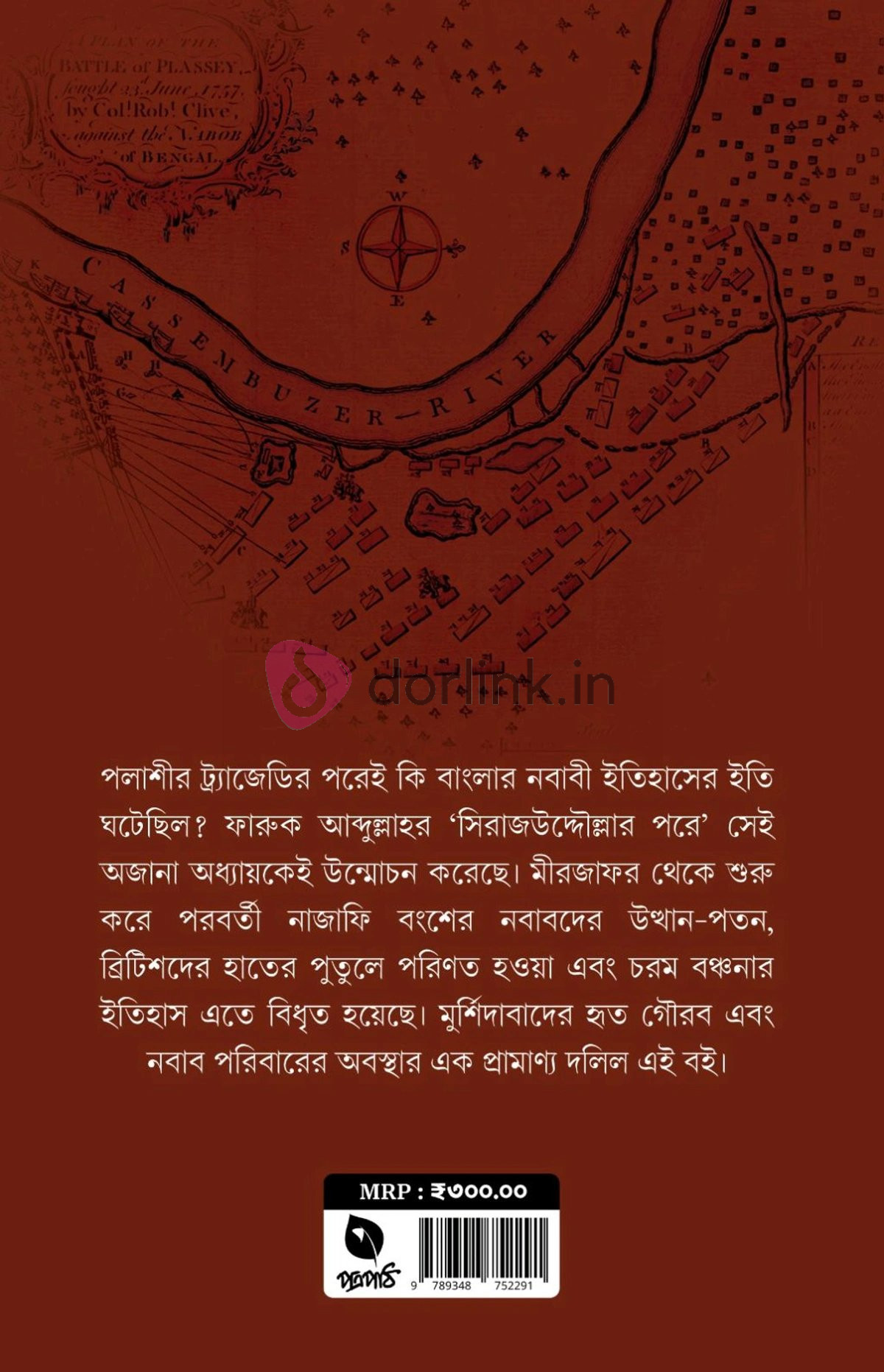 পলাশীর প্রান্তরে সিরাজউদ্দৌল্লার পতনের পরেই কি বাংলার নবাবী ইতিহাসের ইতি ঘটেছিল? ফারুক আব্দুল্লাহর ‘সিরাজউদ্দৌল্লার পরে: নবাবদের কথা (১৭৫৭-২০১৪)’ সেই বিস্মৃত অধ্যায়কেই উন্মোচন করেছে। এই গ্রন্থে মীরজাফর ও মীরকাসিম থেকে শুরু করে নাজাফি বংশের শেষ উত্তরাধিকারী আব্বাস আলি মির্জা পর্যন্ত নবাবদের উত্থান-পতনের অজানা কাহিনি বিবৃত হয়েছে।