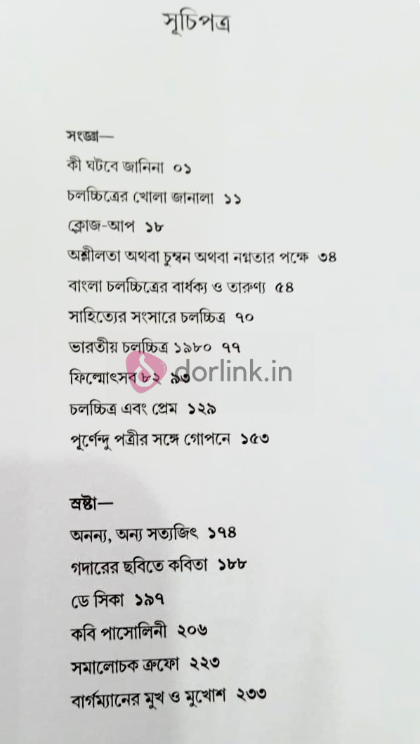 নিজের চলচ্চিত্র সংক্রান্ত রচনাগুলোকে বাদ দিয়ে তাঁর বাকী সব মূল্যবান প্রবন্ধের এই প্রথম সংকলন চলচ্চিত্রে আগ্রহী পাঠক-দর্শকের কাছে মনে হতে পারে এক বিস্ময়কর উপহার। এ বইটিতে তাঁর গবেষণা ধর্মী আলোচনা শুধুমাত্র বিদেশী বা শুধুমাত্র স্বদেশী চলচ্চিত্রের মধ্যেই সীমাবদ্ধ নয়, বিশ্বচলচ্চিত্রের পরিপ্রেক্ষিতেই তাঁর সাহসী এবং প্রশ্নমুখর কথোপকথন।
