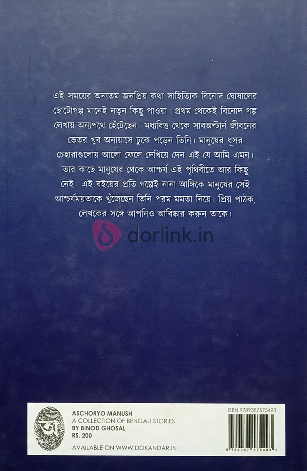 এই সময়ের অন্যতম জনপ্রিয় কথা সাহিত্যিক বিনোদ ঘোষালের ছোটোগল্প মানেই নতুন কিছু পাওয়া। প্রথম থেকেই বিনোদ গল্প লেখায় অন্যপথে হেঁটেছেন। মধ্যবিত্ত থেকে সাব-অল্টার্ন জীবনের ভেতর খুব অনায়াসে ঢুকে পড়েন তিনি। মানুষের ধূসর চেহারাগুলোয় আলো ফেলে দেখিয়ে দেন এই যে আমি এমন। তার কাছে মানুষের থেকে আশ্চর্য এই পৃথিবীতে আর কিছু নেই। এই বইয়ের প্রতি গল্পেই নানা আঙ্গিকে মানুষের সেই আশ্চর্যময়তাকে খুঁজেছেন তিনি পরম মমতা নিয়ে। প্রিয় পাঠক, লেখকের সঙ্গে আপনিও আবিষ্কার করুন তাকে।