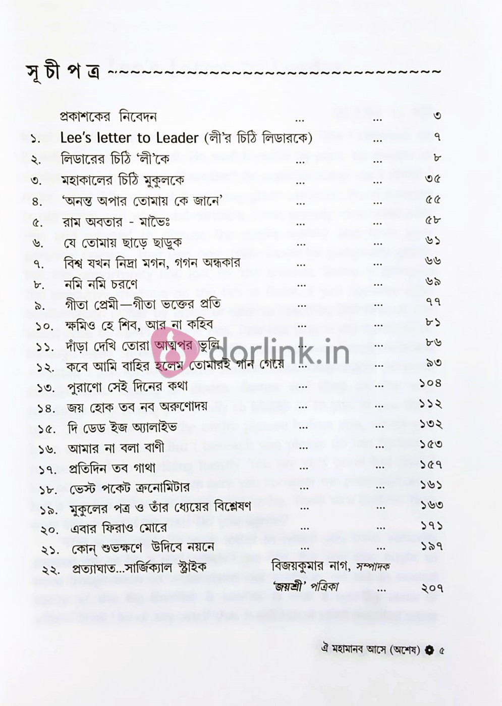 জয়শ্রীতে চারণিকের বিবিধ প্রকাশিত রচনা জানুয়ারি ২০১১-সেপ্টেম্বর ২০১৮ ব্যতিরেকে এই খণ্ডের আকর্ষণ তিনটি অমূল্য চিঠি। 'লী'র তাঁর 'লিডার'কে লেখা এক ছোট্ট চিঠি আর দুটি দীর্ঘ চিঠি 'লী'র লিডার বা সৎগুরুদেব-এর 'লী'কে এবং মহাকালের স্নেহধন্য সুনীলকুমার ওরফে তাঁর প্রিয় মুকুলকে। চিঠি দুটির বিচ্ছিন্ন অংশ হয়তো চারণের 'ঐ মহামানব আসে'র পূর্ব-প্রকাশিত কোনো কোনো রচনায় কিছু উদ্ধৃত হয়েছে। কিন্তু এভাবে মহাকালের কোনো চিঠি ইতিপূর্বে সম্পূর্ণ উদ্ধৃত বা প্রকাশ হয়নি।