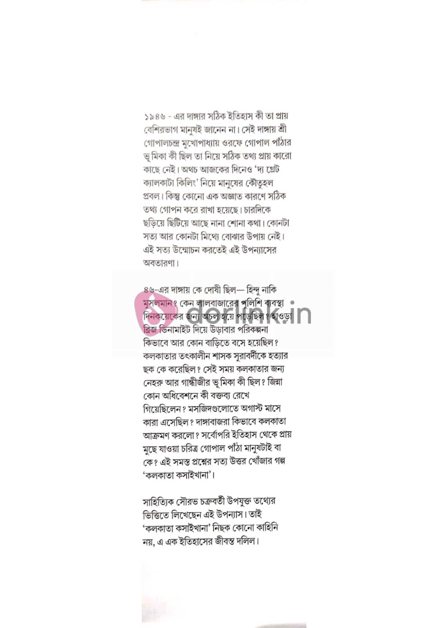 ....এই সমস্ত প্রশ্নের সত্য উত্তর খোঁজার গল্প 'কলকাতা কসাইখানা'। সাহিত্যিক সৌরভ চক্রবর্তী উপযুক্ত তথ্যের ভিত্তিতে লিখেছেন এই উপন্যাস। তাই 'কলকাতা কসাইখানা' নিছক কোনো কাহিনি নয়, এ এক ইতিহাসের জীবন্ত দলিল।